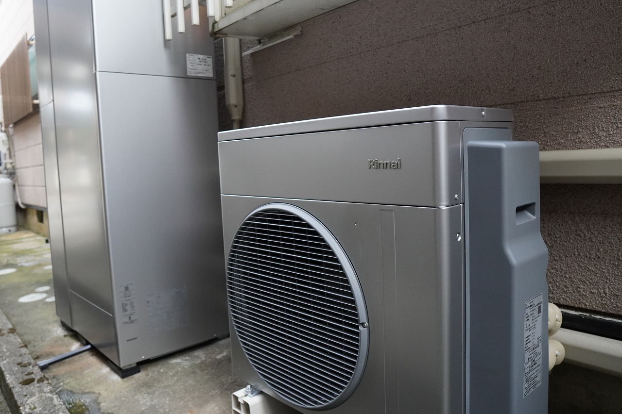 前機種 ハイブリッド給湯器(初期型) タンク100㍑タイプ ヒートポンプ(シャ-プ製) 10年以上使用中の機器が一昨年にエラーコ-ドが点滅。ヒートポンプの故障が発生。壊れた個所はシャープ製のヒートポンプ(エアコン)。修理費用の金額が高くついたので ヒ-トポンプを停止したまま、ガスのエコジョ-ズのみでお風呂を沸かして過ごしていただきました。1年間そのまま使ってみるとハイブリッドの時のガス使用量とエコジョ-ズのみのガス使用量を比べてみると、2倍のガス使用量になったので、省エネのことを考えると新しいハイブリッド給湯器エコワンの方がお得になることが分かり取替をしていただきました。今度はヒートポンプで貯めるお湯の量を100㍑から160㍑タンクの機種を選んでいただきヒートポンプ(ダイキン製)の性能もさらに良くなった新型ハイブリッド給湯器エコワンに取替していただきました。