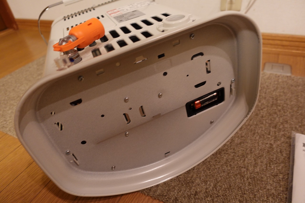 遠赤外線ガスストーブは、乾電池で点火するので万が一の停電でも使えます。送風が無い分・遠赤外線が素肌に当たってお日様の日差しに照らされたようにほっこりと優しく身体が温まります。本体の真下に単2乾電池1個を取り付けます。↓