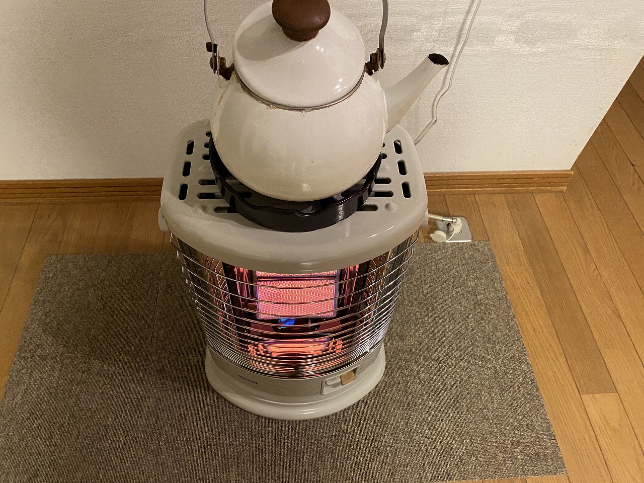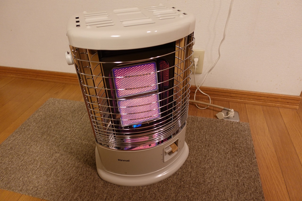 最初 ガスファンヒ-タ-をレンタルで利用していただいてたんですが、送風が無いストーブの方を好まれて、遠赤外線ガスストーブを購入していただきました。↓